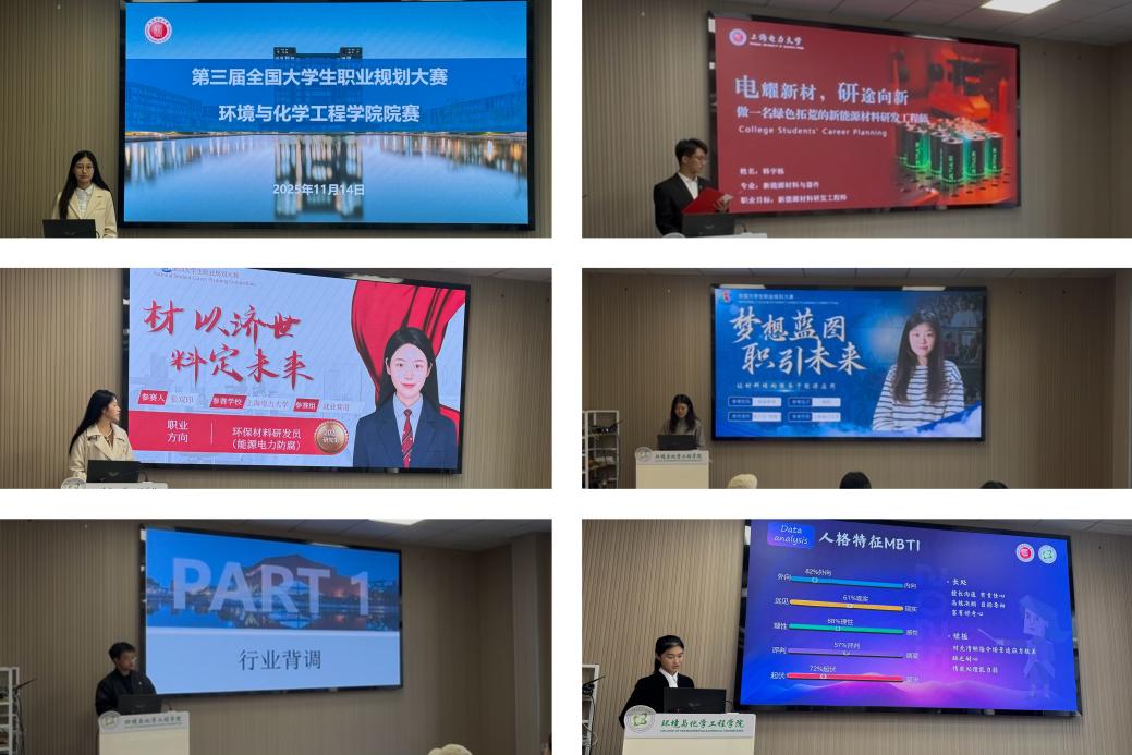 比赛中,选手们围绕职业目标与个人适配性、职业认知、职业精神、实施路径、专业能力与综合素质等多个方面进行精彩的展示。大家纷纷将个人职业规划与国家发展紧密结合,展现了新时代青年的责任与担当。其中,金佳怡同学立志成为一名电厂水处理工程师,并结合自身专业详细阐述了通过学业提升、实践锻炼等途径向目标迈进的计划。黄玥同学则依托自己的专业背景与科研经历,表达了想成为一名材料研发工程师(储能方向)的愿望,投身国家高精端研发事业。评委们对每位选手的展示都给予了认真复盘点评,并提出了针对性的改进建议。经过自我展示、答辩及综合打分等环节,学院最终推荐4位同学代表学院参加学校复赛。