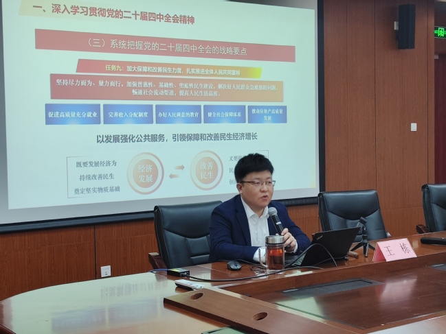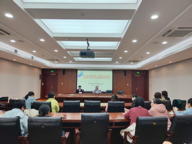 11月20日,文科学部在临港校区学术楼303会议室组织召开党的二十届四中全会精神专题学习会。会议采取专题报告与理论宣讲相结合的方式进行,由学部党委书记刘洁荣主持,学部师生参会。