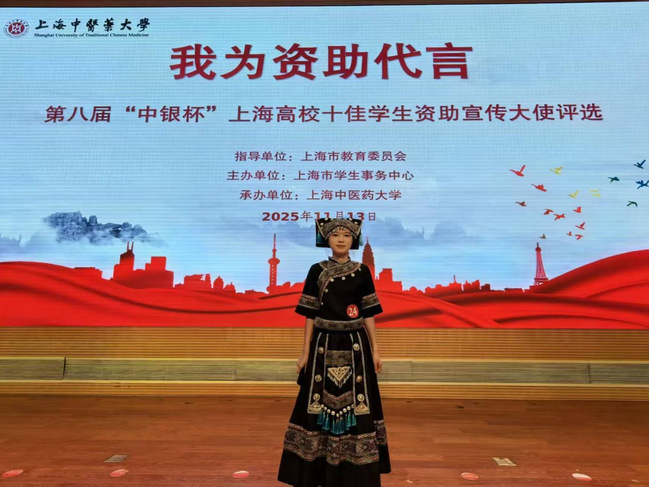 近日,由上海市教育委员会指导,上海市学生事务中心主办的第八届“我为资助代言”上海高校十佳学生资助宣传大使评选活动在上海中医药大学落下帷幕。我校经济与管理学院张宇婷同学凭借精彩的演讲、丰富的资助宣传经历,获得评委一致认可,获评上海高校十佳学生资助宣传大使称号。