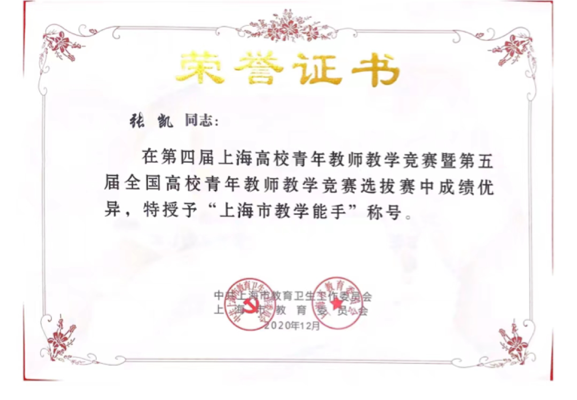同事说:张凯老师是我们年轻教师里面的典型代表,无论在本科生教学、研究生教学,还是课程思政、纵向科研等领域均取得突出成绩,他为人谦虚、治学态度严谨、热爱学生、敬业爱岗是我们学习的榜样!