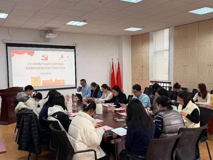 为持续深入学习贯彻党的二十届三中全会精神,切实提高基层党建工作质量,推进党建和业务深度融合,2024年12月30日,电子与信息工程学院2024年度党支部书记抓基层党建工作述职评议会在电计楼B402会议室举行。学院党政领导班子、党委委员、各党支部书记、学生党员代表出席会议,数理学院专职组织员魏钰桐列席会议,会议由学院专职组织员修绍梅主持。