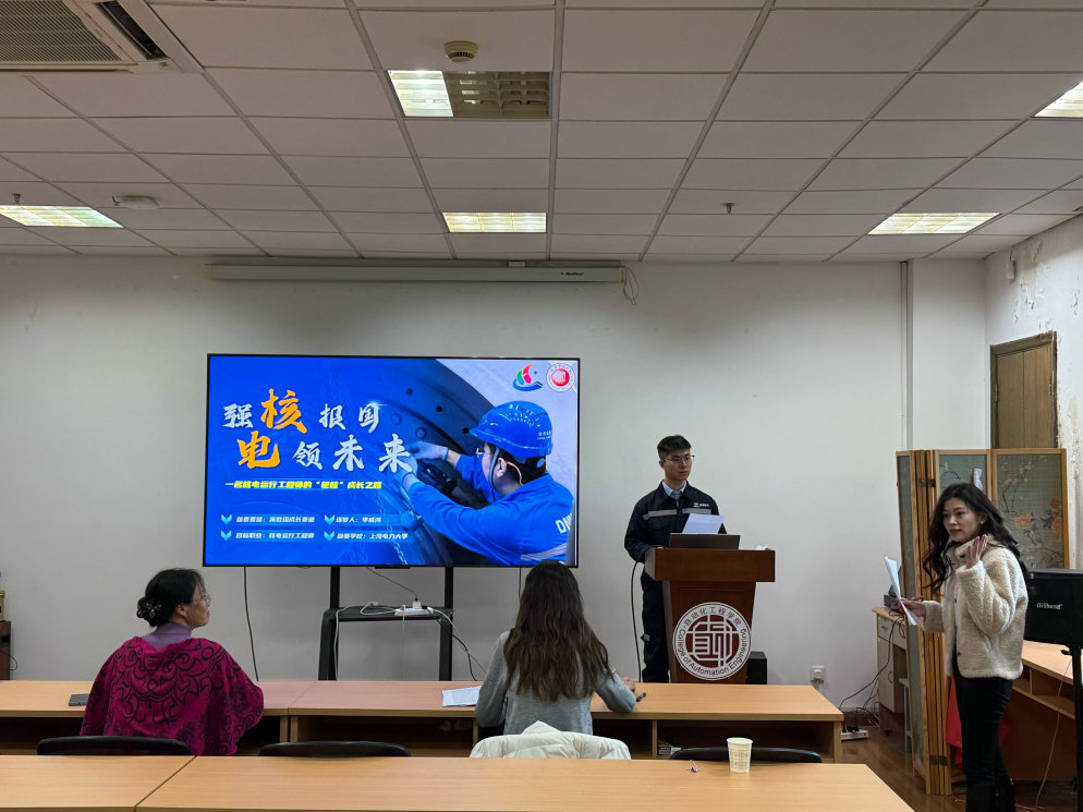 经过前期多轮指导打磨,李威鸿以“强核报国,电领未来”为主题现场路演参赛作品,从“核”心所向、“核”力成长、“核”创未来三个方面展示了以一名核电运行工程师为职业目标的职业规划。随后,程麟在指导中从语言节奏、语音语调、情感表达等多个方面进行了深入分析,并现场示范如何通过语言技巧更好地传递职业规划的核心信息。现场观摩学生围绕职业规划主题积极互动交流。