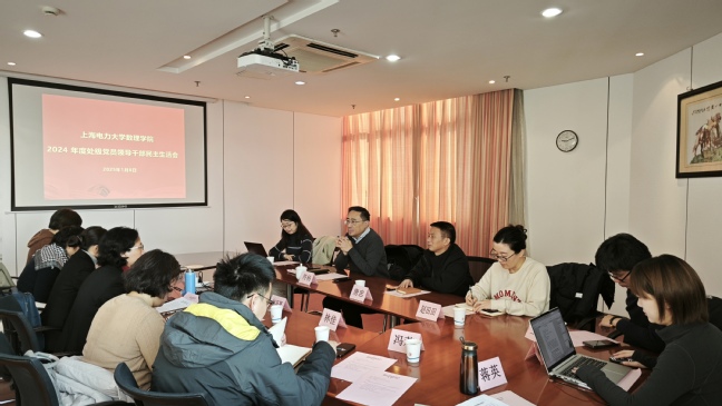 2025年1月8日上午,2024年度数理学院处级党员领导干部民主生活会在杨浦校区行政楼9楼2号会议室召开。副校长符杨莅临指导,校第六督导组组长唐忠、副组长陈静、联络员赵田田列席指导。学院领导班子成员、党委委员、工会主席、办公室主任、兼职组织员、教师代表参会。会议由学院党委书记徐广新主持。