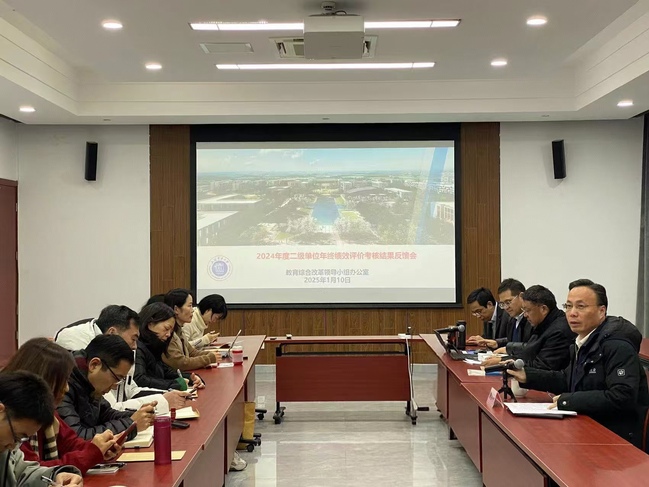 1月10日,我校2024年度二级单位年终绩效评价结果反馈会在临港校区召开。全校中层正职干部出席。会议由校党委副书记、校长顾春华主持。