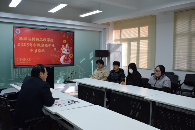 春节前夕与寒假留校学生进行慰问交流活动,送上学院暖心的关怀和诚挚的祝福,已成为能机学院的传统。同学们留校过年期间,不仅有师长关于安全的悉心叮嘱和殷切期望,更有同学们之间亲切交流和友好互助。后续,学校学院也将开展一系列的活动,丰富留校学生的生活,共同度过一个祥和、充实的新春佳节。