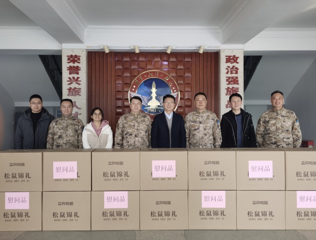 为深入扎实做好节日期间拥军优属工作,1月21日,校党委副书记、副校长朱克勇带队前往我校共建单位——空军导弹部队某旅进行新春慰问。武装部部长金炜、副部长余南飞陪同慰问。