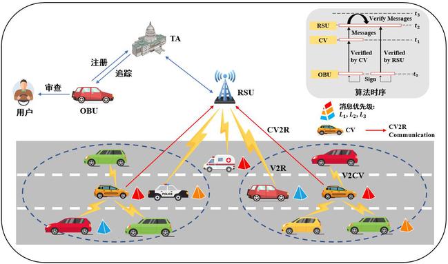在《IEEE Transactions on Vehicular Technology》上发表题为“DPB-MA: Low-Latency Message Authentication Scheme Based on Distributed Verification and Priority in Vehicular Ad Hoc Network”的论文,针对高密度车联网环境下消息验证低效率、高实时性要求等问题,提出了DPB-MA方案。通过RSU和协作车辆之间的合作来执行消息的分布式认证,在保证安全性和隐私的同时,最大限度地减少了总验证时延。其次,基于不同类型消息的时延容忍设计了消息优先级策略,从而实现了按优先级顺序验证消息,以确保及时验证紧急和重要消息。