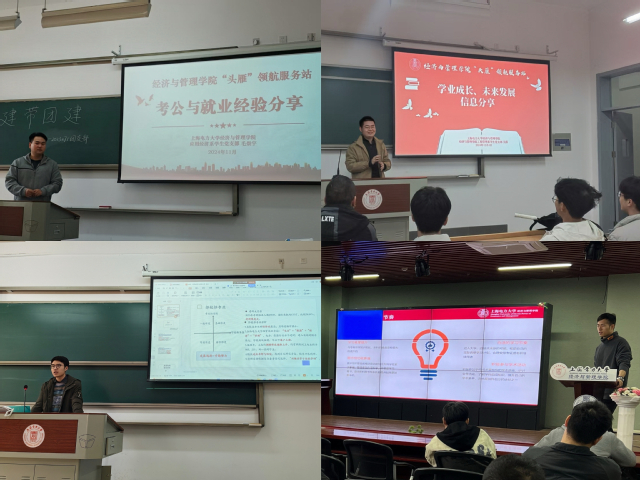 在升学就业方面,服务站党员沈思利重点介绍了学校奖学金设置,以及自身学业规划的经验,以“博观约取,厚积薄发”为题鼓励同学们订立目标,早做规划;党员毛崇宇分享考公经历,鼓励团员们多关注党政新闻,学习党的创新理论;研究生党员张波、陈汇沣分享考研经验,强调要提前做好规划,明确基础、强化和冲刺阶段的学习目标和任务;吴薛传授自己在实习面试的经验,指出要了解自己的能力、性格特点,选择适合的就业方向,学习更好地展示自己。