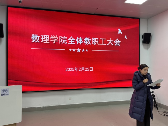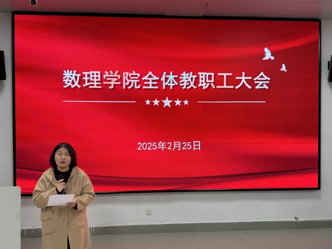 新元肇启,万象更新。为确保新学期学院各项工作稳步推进,数理学院精心谋划,扎实做好开学及开学后相关工作,2月25日下午,学院召开全体教职工大会,对新学期教学、科研、学生工作等学院各项工作进行部署安排。学院班子成员及全体教职工参加会议,会议由学院党委书记徐广新主持。