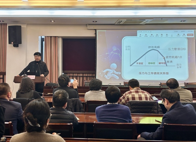 贺岭峰教授以《新时代高层次人才的心理养护之道》为题,通过通俗易懂的心理学专业知识、丰富生动的实验案例,结合心理学小测试的现场互动,分析现代社会中人类压力的来源,细致阐述压力反应对生理机能的影响、与工作绩效的关系。他结合自身工作实践,从培养健康积极的心理状态和生活方式出发,提出高压力时代背景之下,有效实现压力管理具体措施和养护方法。