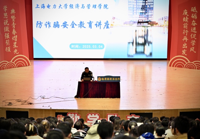 为增强师生的安全防范意识,筑牢校园安全防线,3月3日,经济与管理学院在大学生活动中心举办防诈骗安全教育专题讲座。临港高校派出所副所长张华、学院党委副书记孟延新、保卫处王旭以及2023级、2024级辅导员出席,学院2023级、2024级全体学生参与,讲座由辅导员阿布都如苏力·麦麦提明主持。