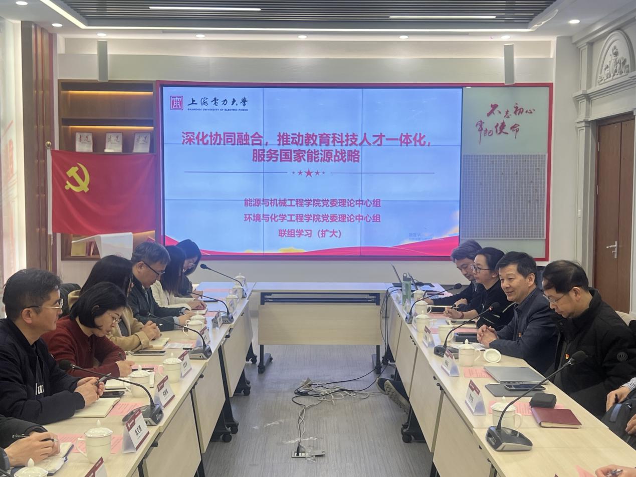 3月10日,能机学院党委与环化学院党委在临港校区党建服务中心举办了主题为“深化协同融合,推动教育科技人才一体化,服务国家能源战略”的二级中心组联组(扩大)学习。能机学院党委委员、环化学院党委委员、两学院教师代表出席,党建服务中心/党建督察室党建督察员周维刚列席会议,能机学院党委书记潘卫国主持会议。