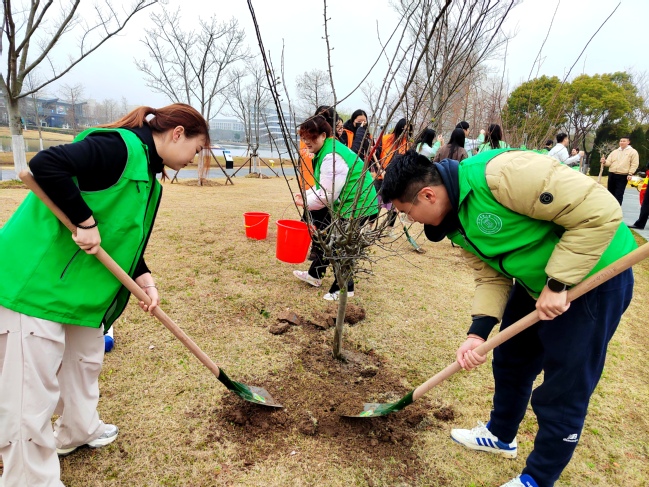 学生们表示,这次活动不仅让他们亲身体验到植树的乐趣,更增强了他们的环保意识和社会责任感。经济与管理学院袁晴说道,“能够参与这样的活动,我感到非常有意义。植树造林是功在当代、利在千秋的大事,我们每个人都应该为保护环境贡献自己的一份力量。”。能源与机械工程学院崔誉荙表示,“当我触摸树苗时,也懂得了‘生长’的深意——正如脚下这片十年前还荒芜的滩涂,如今已崛起成浦东新区的智慧生态之城。”