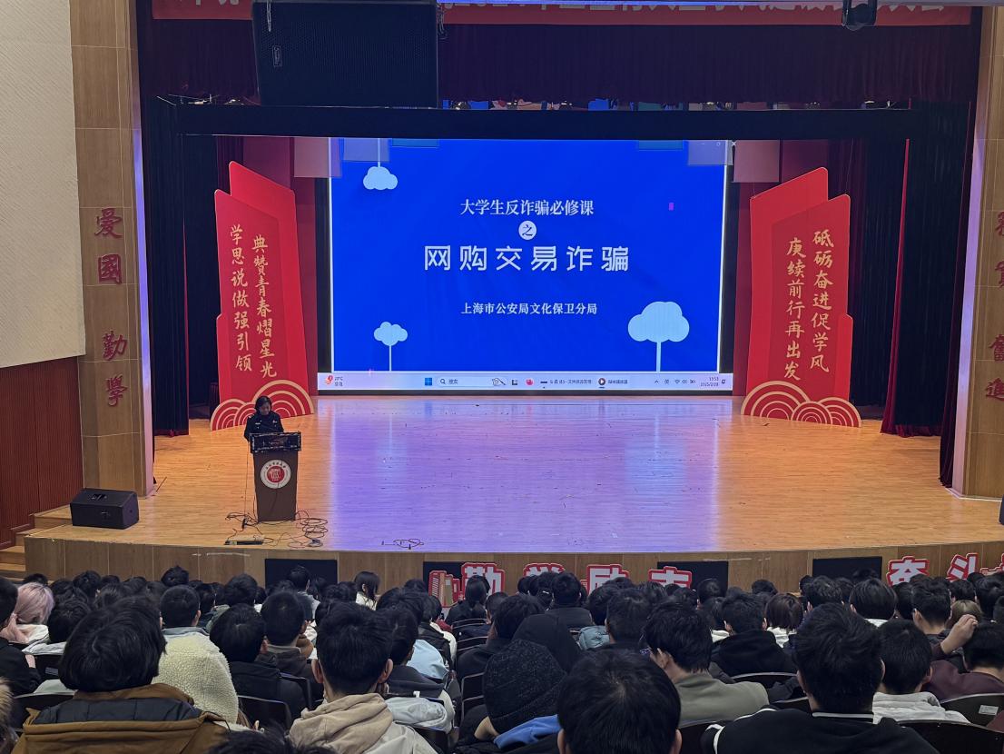 2月28日,环化学院邀请临港高校派出所警官朱红以及我校保卫处保卫科王旭走进课堂,为学生们带来了一场别开生面的沉浸式反诈教育体验。朱红警官聚焦于学生群体中高发的冒充熟人诈骗、网络裸聊诈骗、网络兼职刷单诈骗等典型案件,结合当下人工智能等新型诈骗手段,开展了深入的专题讲座。讲座中,朱红警官通过剖析真实案例、播放警示视频以及进行情景模拟演示等多元方式,生动形象地向学生们揭示了诈骗分子的惯用伎俩。她着重提醒学生,在使用社交媒体、网络交易平台时,务必高度重视个人信息的保护,合理设置支付延迟功能。同时,朱红警官告知学生若遭遇可疑情况,第一时间联系学院辅导员,以便及时获得专业指导与帮助。