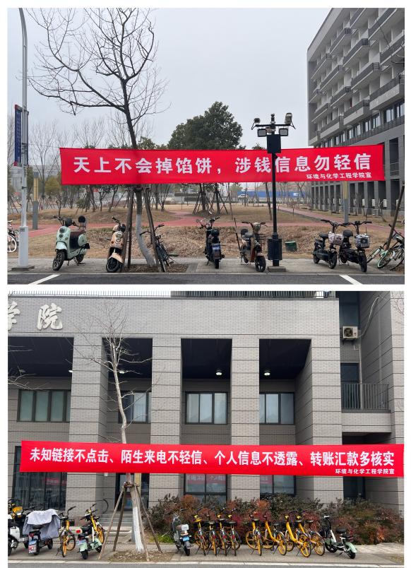 为切实增强学生对电信网络诈骗的防范意识与应对能力,全力构筑校园安全坚实防线,自开学以来,环化学院紧密联合临港高校派出所、校保卫处开展了一系列覆盖全面、形式多样的防电信诈骗宣传活动。
