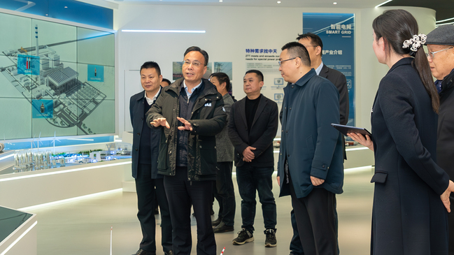 薛驰陪同顾春华参观了中天科创中心文化品牌展厅,深入了解该公司的发展历史和产业布局。随后在座谈会上,听取了中天科技电力产业集团技术委员会副总工冯祝华关于集团最新发展情况的补充介绍。
