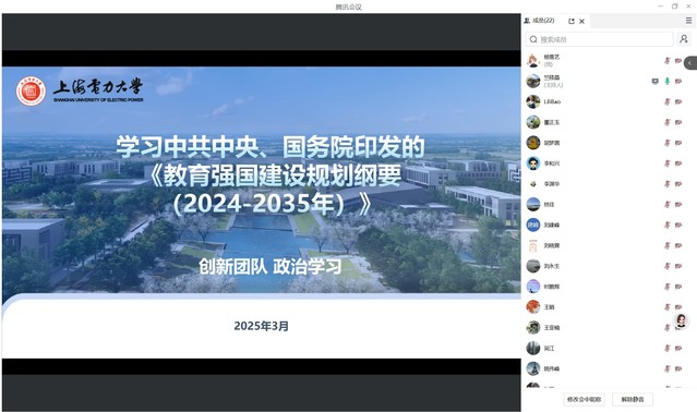 随后,团队共同学习《教育强国建设规划纲要(2024-2035年)》。大家深刻认识到教育强国建设的重要性与紧迫性,一致表示要将规划纲要精神融入日常工作,在科研中注重人才培养,提升教育教学质量,加强学科建设,为实现教育强国目标贡献力量。成员们还就如何将教育规划与团队科研发展紧密结合展开交流,提出加强产学研合作教育、培养创新型人才等举措。