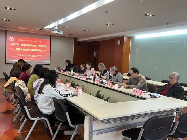 为更好地落实教育部关工委“读懂中国”活动要求,开展好我校2025年“读懂中国从电说”主题活动,3月14日下午,校关工委2025年“读懂中国从电说”教育活动暨第七辑手账卡编撰启动会在杨浦校区召开。校关工委常务副主任石奇光,副主任韦钢,秘书长庄民生,老同志代表王鲁杨、高永丰,自动化工程学院党委书记刘莉,校关工委青年教师委员杨锦程,以及师生代表参会。会议由校关工委秘书长刘洁荣主持。