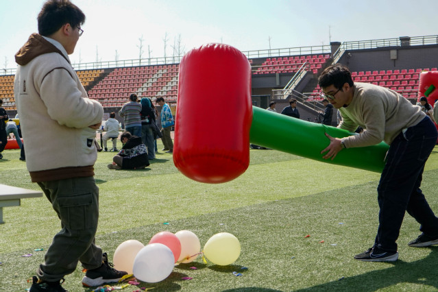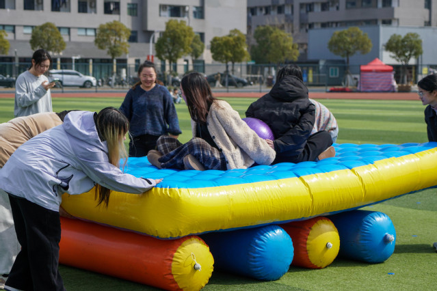近日,经管学院举办主题为“趣青春,FUN肆嗨”的2024级新生心理趣味运动会,全体2024级新生参与其中。活动现场热闹非凡,充满了青春的活力与欢声笑语,旨在助力新生们更好地适应大学生活,培养新生们团队协作精神,促进心理健康发展。
