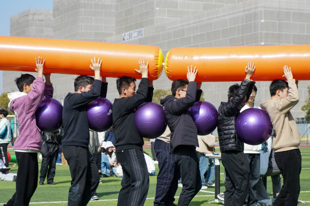 本次运动会精心设置了多个趣味项目,这些项目都将团队协作精神体现得淋漓尽致。贪吃蛇挑战、车轮滚滚、雷霆战鼓、快乐大锤与百发百中,五个项目各具特色,既考验同学们的个人能力,又锻炼团队分工意识与相互之间的磨合。通过这些趣味运动,同学们在欢声笑语中释放压力,增强班级凝聚力,收获快乐与成长。其中,雷霆战鼓与贪吃蛇挑战作为兼具双重能力考察的项目尤有难度,雷霆战鼓需要观察掌握颠球落点与平衡挪动步频的诀窍。在贪吃蛇挑战中由于“身高差”原因也为此项运动带来难度,但齐心协力最后抵达终点时同学们更加体会团结的重要。
