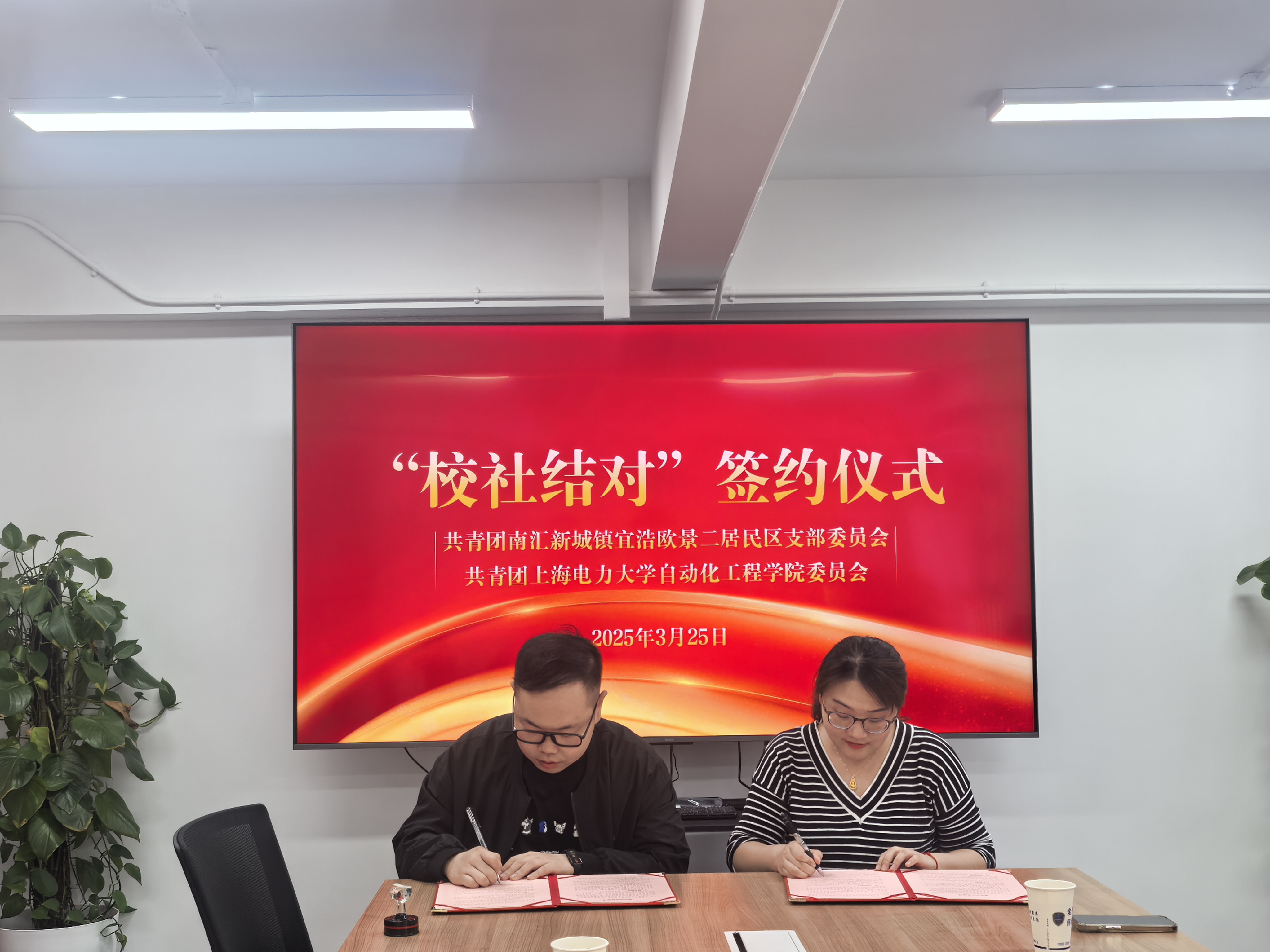 志愿服务开展前,学院团委与宜浩欧景二居委举行“校社结对”签约仪式,学院团委书记侯林、挂职团委副书记王旻洁和社区相关负责人出席活动。