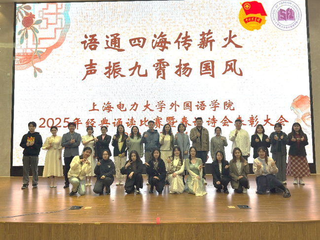为深入贯彻党的二十届三中全会精神,践行习近平文化思想,引导学子深耕中华传统经典、厚植文化根脉,以诗韵浸润文化自信,3月24日,外国语学院在临港校区学术楼117举行“语通四海传薪火,声振九霄扬国风”经典诵读比赛暨春语诗会表彰大会。外国语学院党委副书记余嘉、人文艺术学院教师安艳、电子信息与工程学院团委挂职副书记李骁、外国语学院团委书记赵梦嫄出席活动并担任评委,现场百余名师生共赴一场富有诗意的文化盛宴。