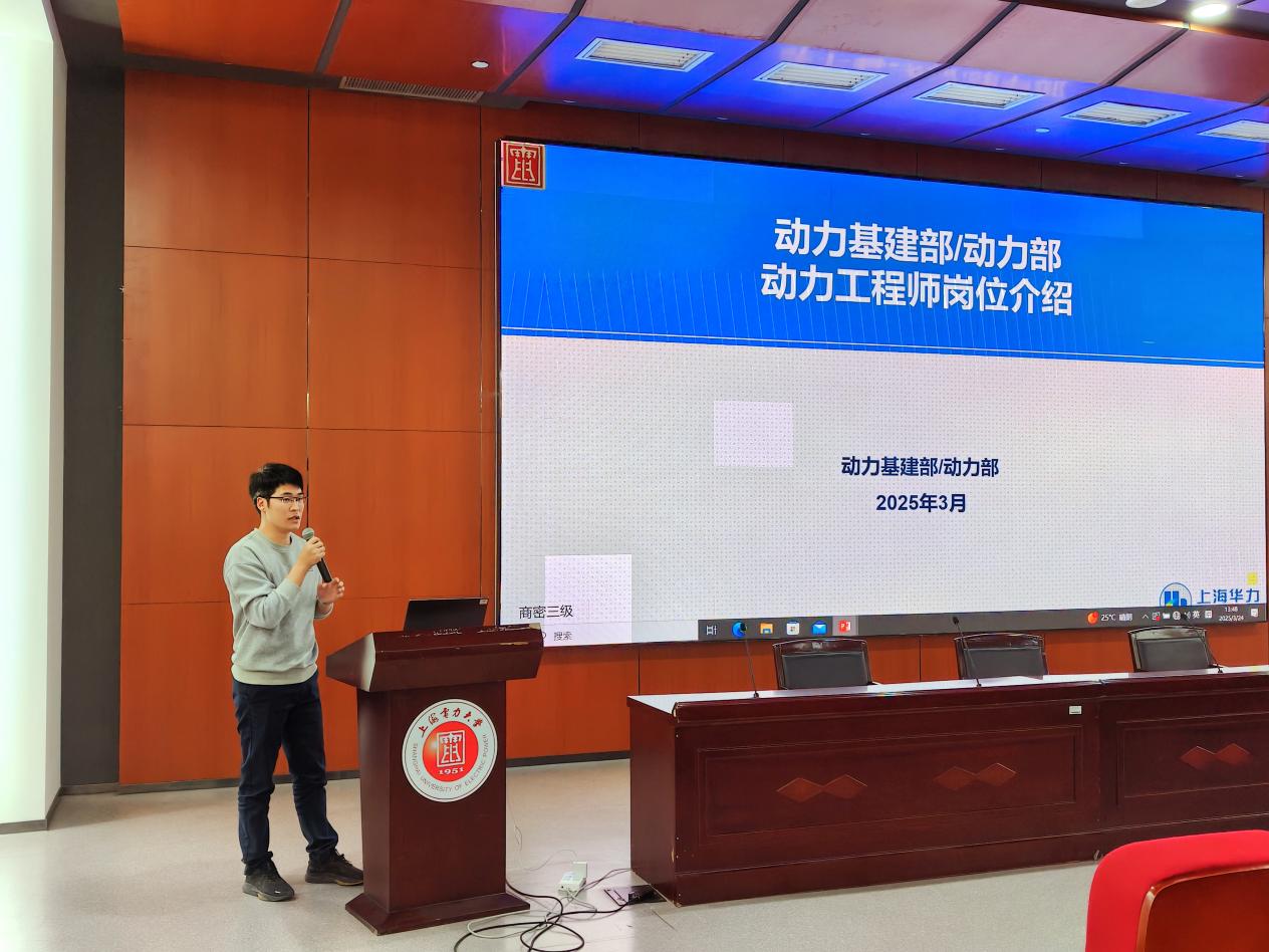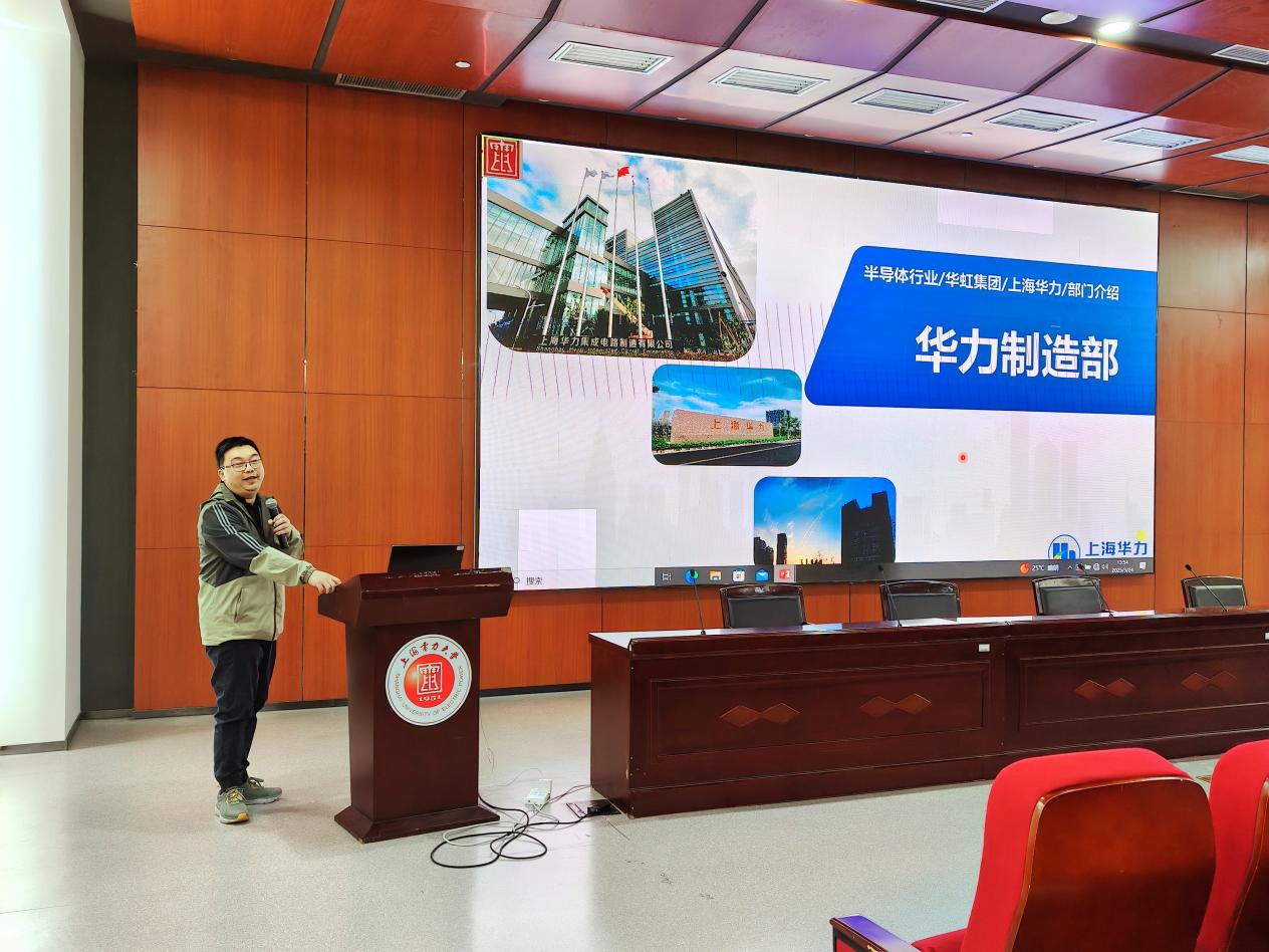 随后,上海华力的3位技术官依次进行部门和岗位等内容介绍。设备工程部技术官围绕摩尔定律发展现况、集成电路产业概况和集成电路工艺流程简介进行介绍;动力部技术官主要围绕动力工程师工作职能进行详细讲解;制造部技术官重点介绍制造部的部门概况以及人才培训体系。3位技术官的详细介绍为同学们投递岗位提供了参考,明确了求职方向。